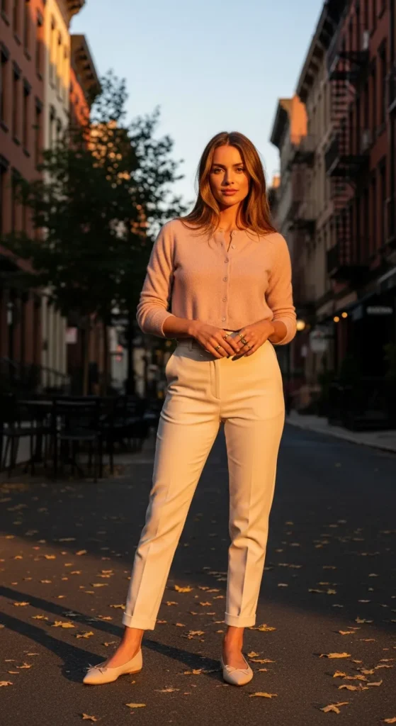 Stylist Suggestion: Wear pointed ballet flats and delicate rings. The flats keep the look feminine and refined, while subtle rings add detail without competing with the tailored trousers.