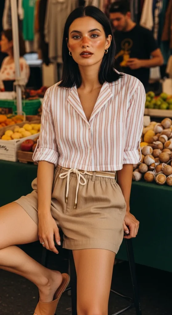 14. Drawstring Linen Shorts with a Cropped Camp Collar Shirt