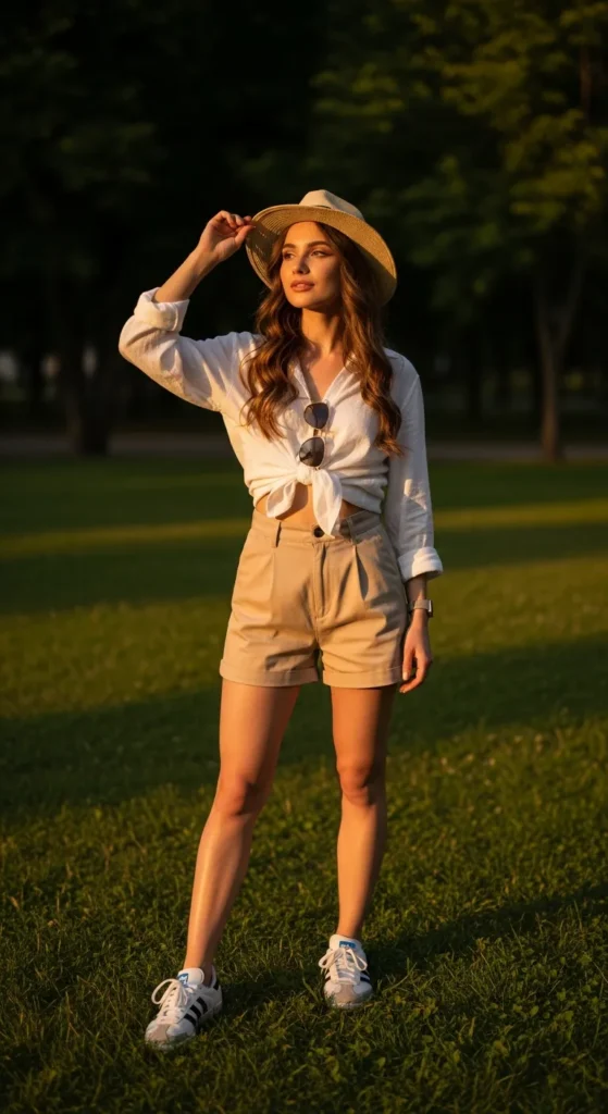 Stylist Suggestion: Knot the shirt at the waist and add a straw hat for a playful, summery touch that enhances movement and keeps the outfit visually balanced.