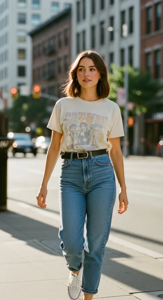 A fitted graphic baby tee with subtle vintage-inspired artwork feels playful and nostalgic. Styled with high-rise jeans or a denim skirt, it brings casual confidence and personality to everyday summer styling.