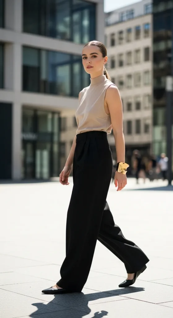 Stylist Suggestion: Wear bold cuff bracelets. The strong accessory balances the minimal silhouette and adds depth without overwhelming the outfit’s simplicity.