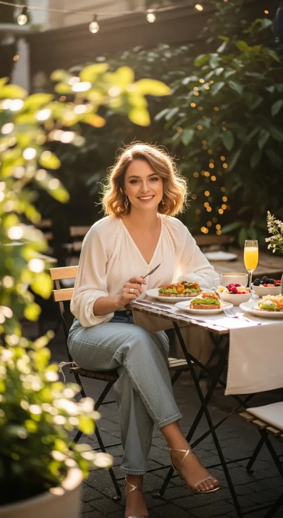 A soft, flowy blouse paired with structured baggy jeans creates a beautiful contrast. It’s feminine but grounded, perfect for brunch dates or casual gatherings.