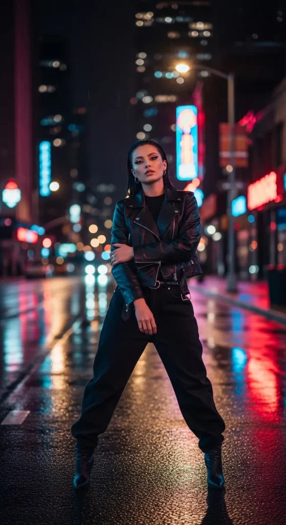 A leather jacket instantly adds attitude to black baggy jeans. It’s edgy without being too loud, making it perfect for evenings or when you want to feel a little more confident.