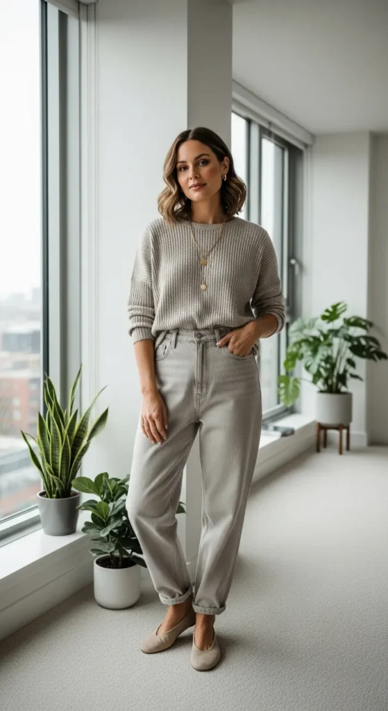 Stylist Suggestion: Go for delicate jewelry and ballet flats. These softer details complement the cozy vibe and keep the outfit looking gentle and put-together.