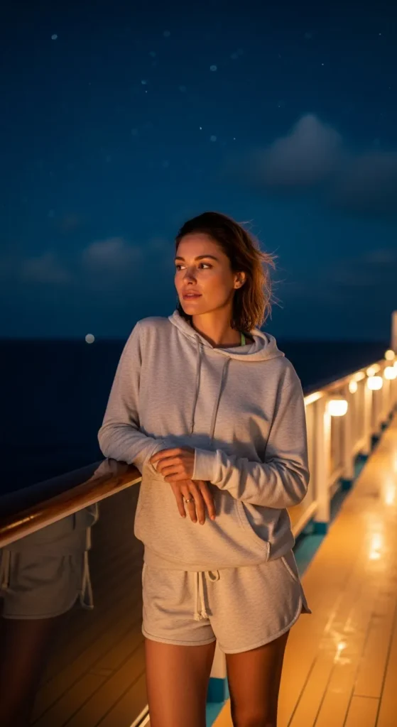 For breezy evenings, a lightweight hoodie with soft shorts feels cozy without overheating. It’s perfect for late-night deck walks.