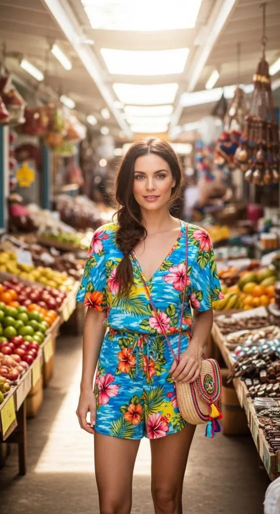 A relaxed romper with a delicate print feels playful without being loud. It’s easy, comfortable, and perfect for exploring local markets.