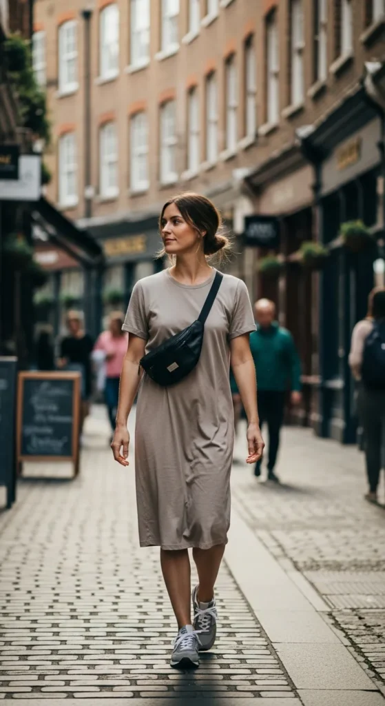 A longline tee dress styled with New Balance sneakers feels modern and relaxed. It’s a one-and-done outfit that still looks intentional, perfect for days when you want ease without sacrificing style.