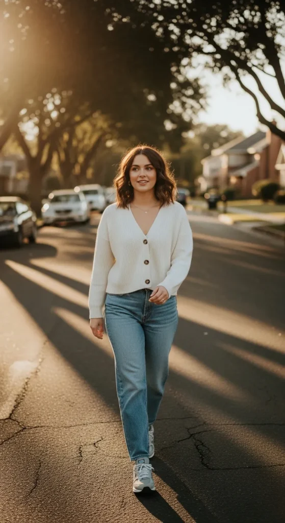 Stylist Suggestion: Leave the cardigan slightly open to create movement. This keeps the outfit from looking heavy and adds visual ease.