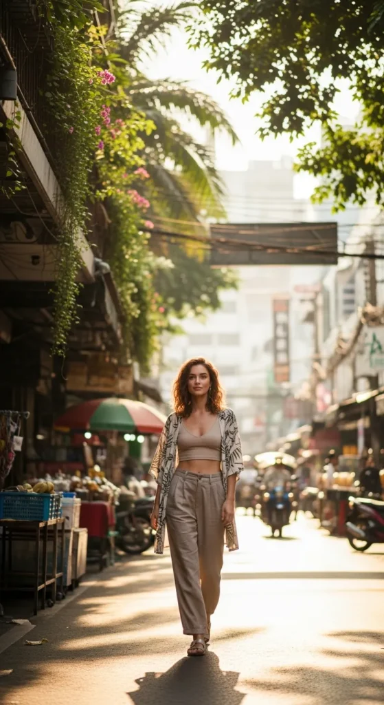 Bangkok has this way of wrapping you in warmth the moment you step outside, humid air, golden temples, street food aromas, and a city rhythm that never really slows down. Dressing here isn’t just about style, it’s about comfort meeting confidence. You want outfits that breathe, move, and still feel effortlessly chic when you’re hopping from a café to a night market. These outfit ideas are designed to help you feel put together without fighting the tropical heat.