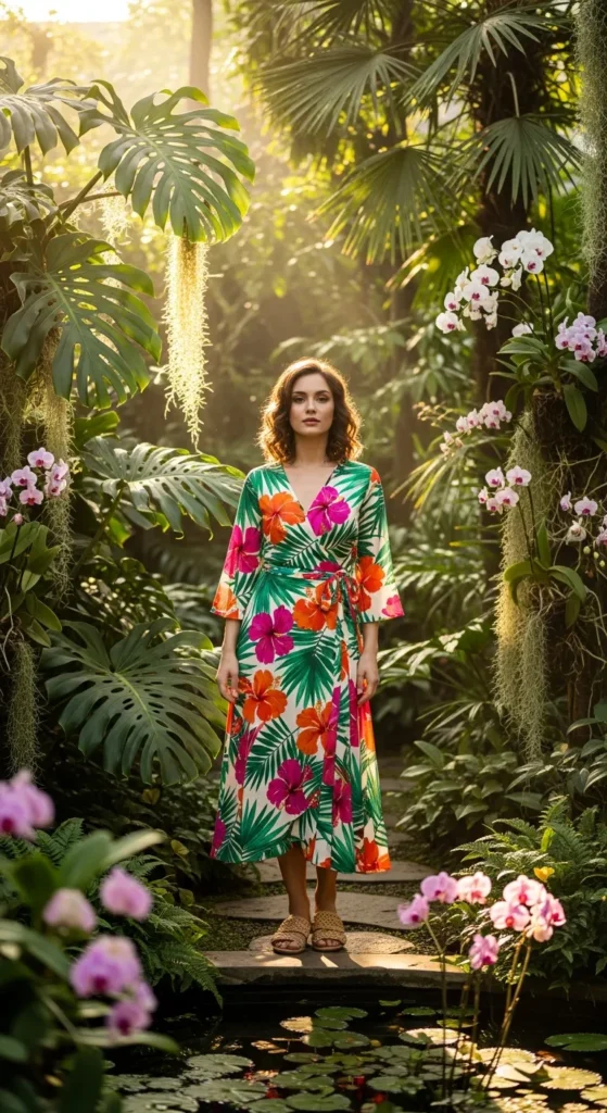 A wrap dress flatters every body type while staying airy and adjustable, making it ideal for humid climates like Bangkok.
