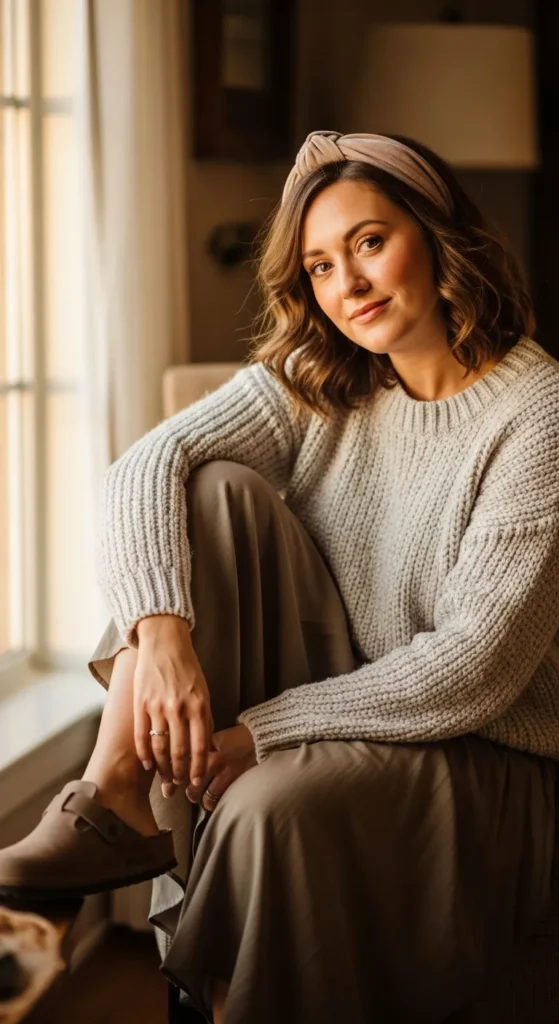 A soft knit dress paired with Birkenstock clogs creates an unexpected mix of cozy and chic. It’s comfortable while still feeling feminine and intentional.