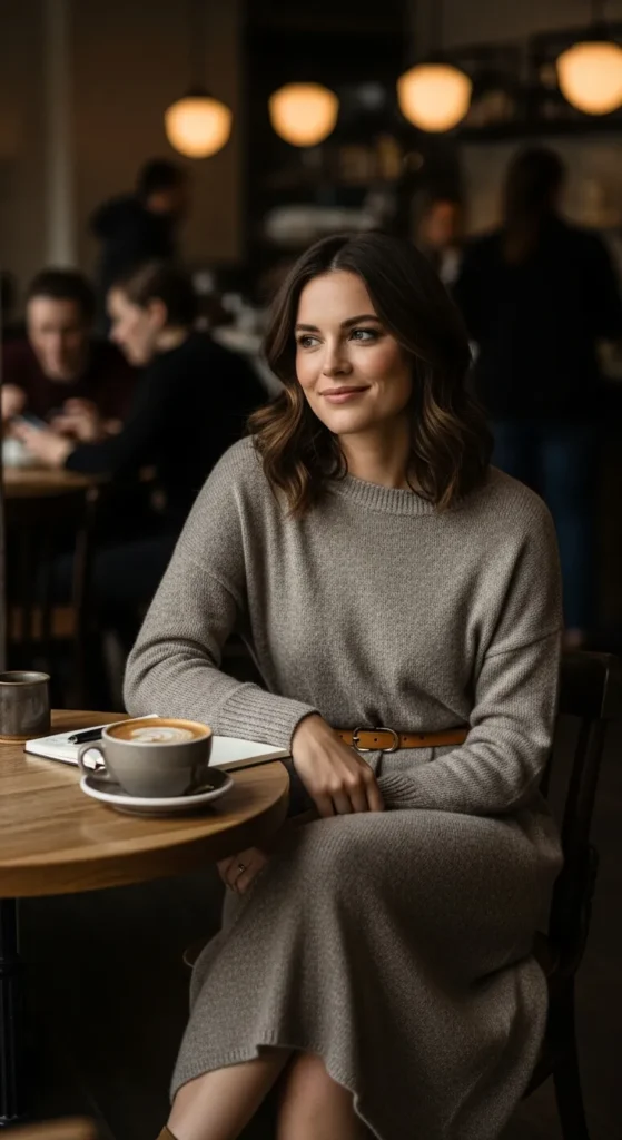 Stylist Suggestion: Add a thin leather belt and tuck the cardigan slightly in front. This small detail defines your waist and keeps the outfit from feeling shapeless.