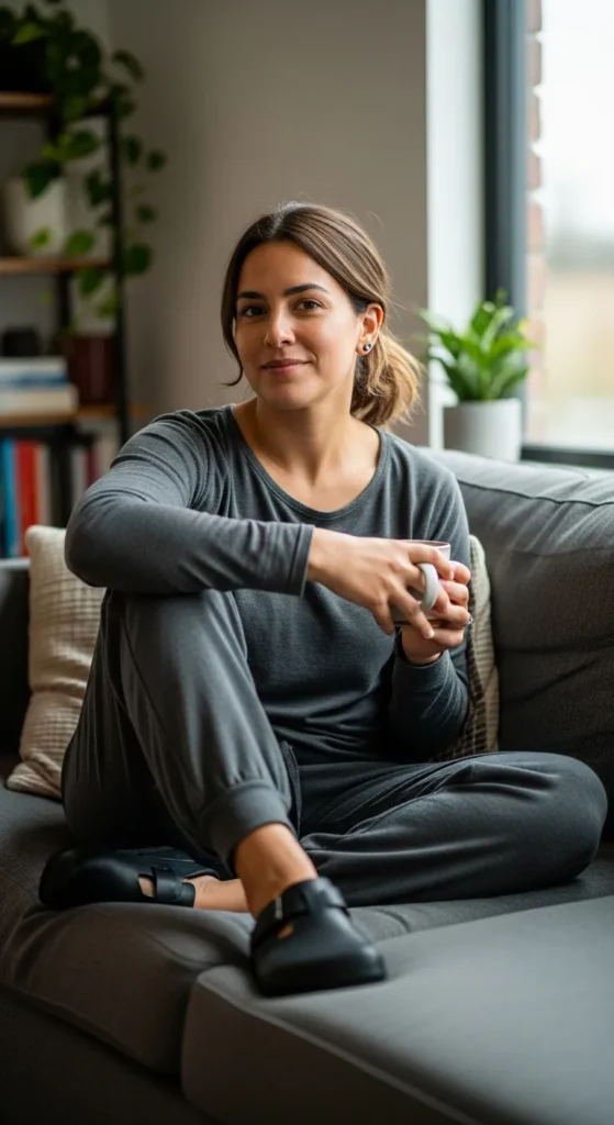 Stylist Suggestion: Add small gold hoops and a sleek low bun. This keeps the look refined while maintaining the comfort-first approach.