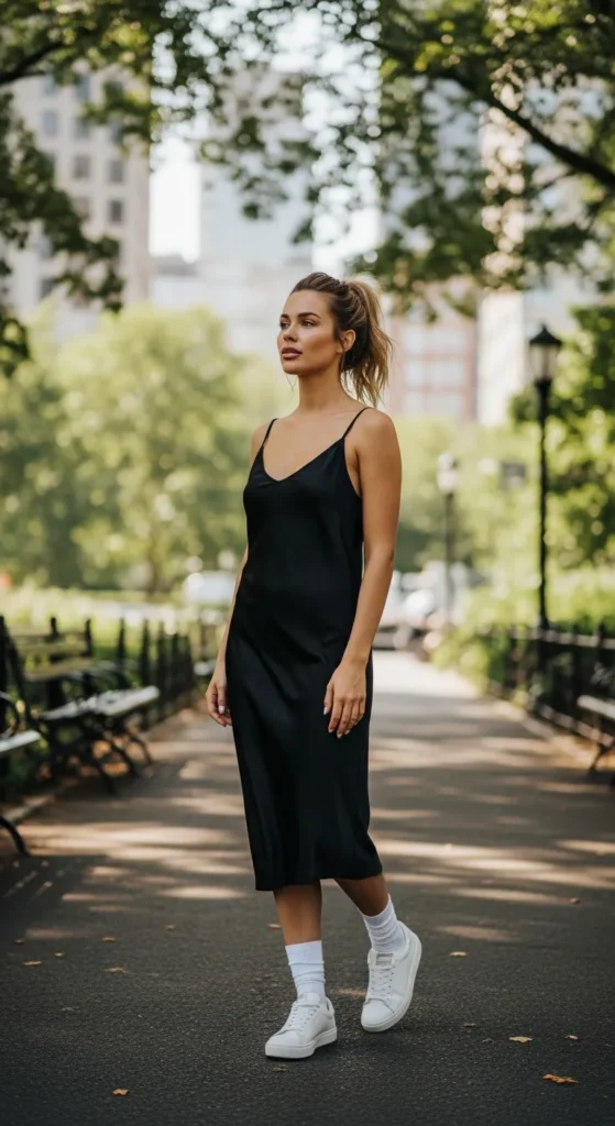 2. Black Slip Dress with White Sneakers