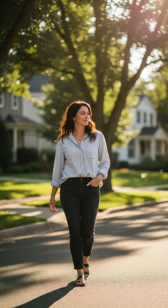 An untucked button-up with black jeans feels effortless and lived-in. It’s comfortable without looking careless, ideal for busy days when style still matters.
