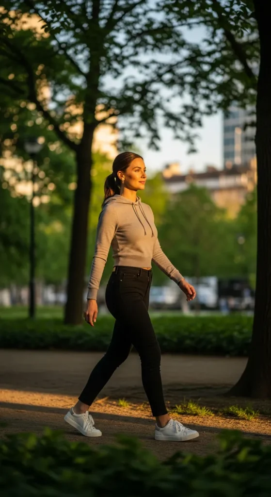 Stylist Suggestion: Keep the hoodie fitted and add sleek sneakers. This prevents the outfit from looking sloppy and keeps the silhouette streamlined.