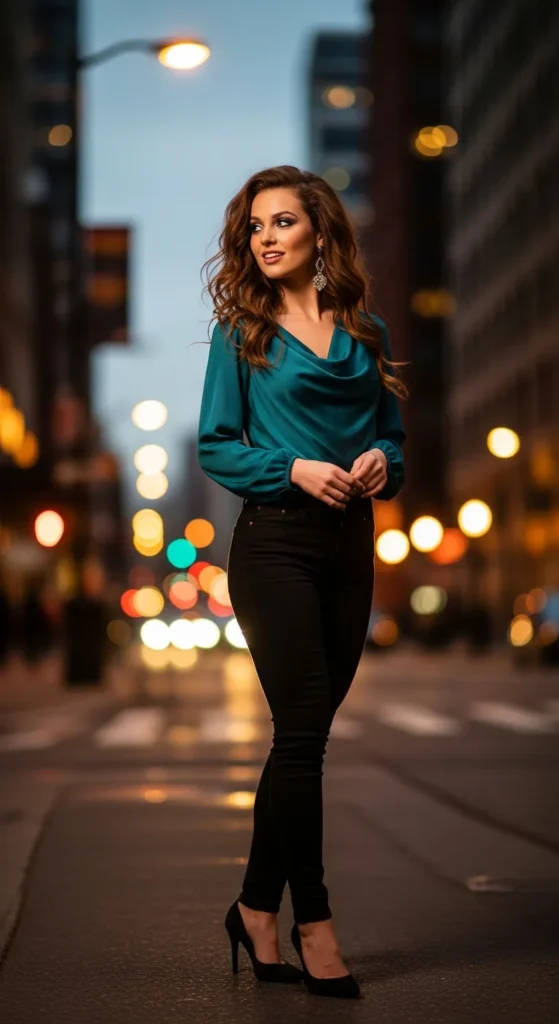 Stylist Suggestion: Add a slightly glossy lip and small earrings. Subtle shine elevates the look for evening without making it feel overdressed.