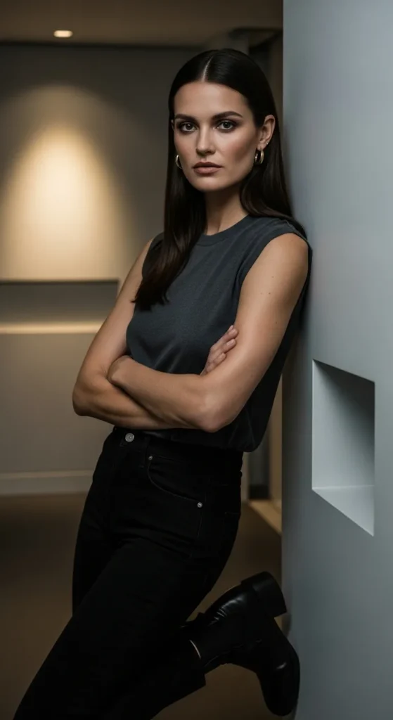 A simple tank with black jeans can feel surprisingly elevated when styled right. Clean lines and confident simplicity make this look quietly powerful and endlessly versatile.