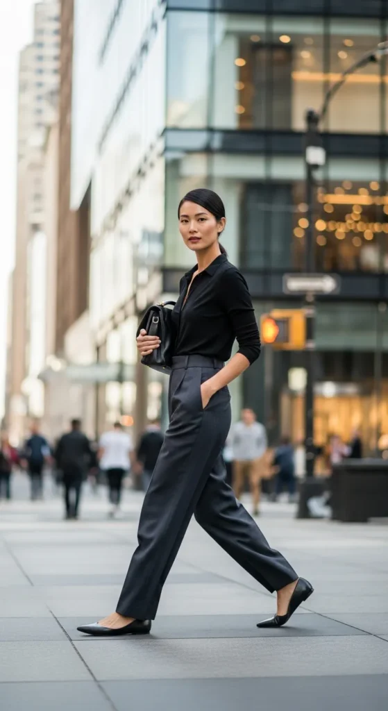 Stylist Suggestion: Add pointed flats and a structured bag. These enhance the tailored lines and maintain the clean silhouette.