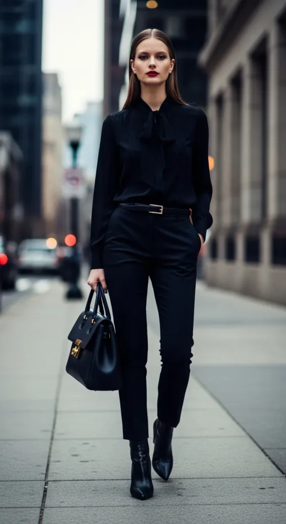 6. Monochrome Black Outfit with Statement Bag