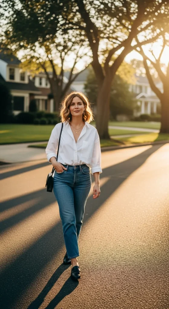 1. Relaxed White Shirt with Straight-Leg Jeans