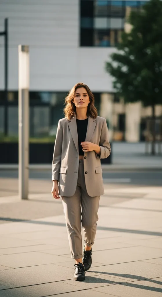 Stylist Suggestion: Opt for a low bun or sleek ponytail. This keeps the outfit sharp and lets the clean lines of the tailoring stand out without distraction.