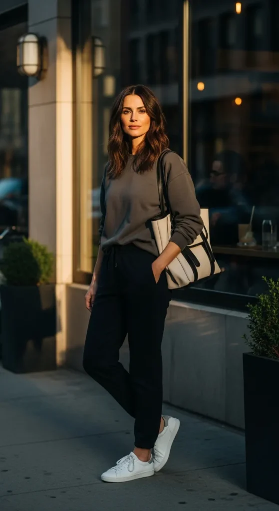 Stylist Suggestion: Add a slim crossbody bag and sleek sneakers. The structured bag contrasts the softness of the sweatpants, making the entire outfit feel intentional and polished.