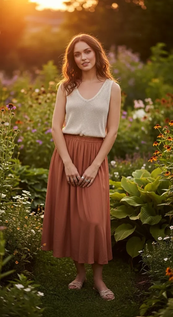 16. Sleeveless Boho Top with Soft Midi Skirt