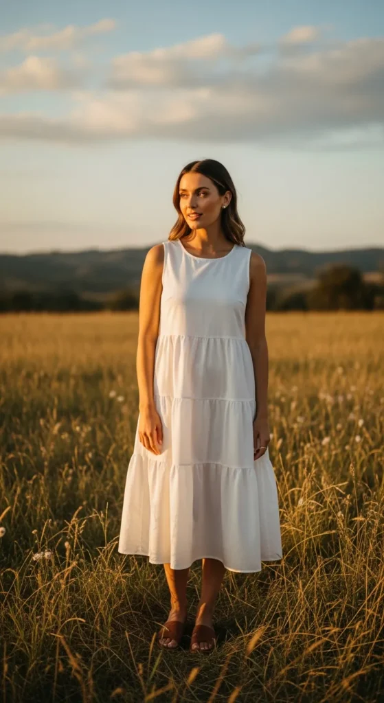 9. Tiered Cotton Dress with Minimal Slides