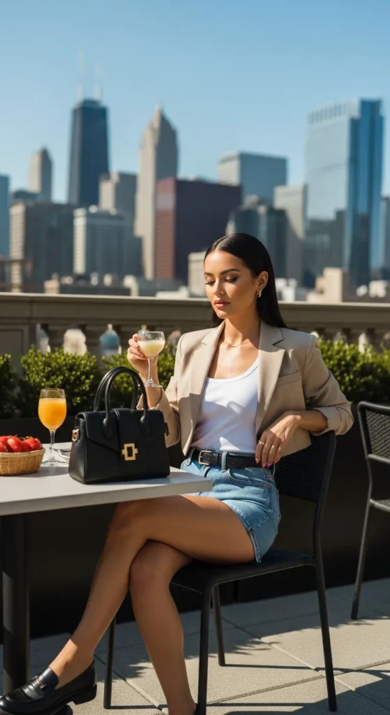 A ribbed bodycon dress layered with an oversized linen shirt feels casual yet subtly flirty. It’s confident without being overdone, perfect for trendy brunch cafés.