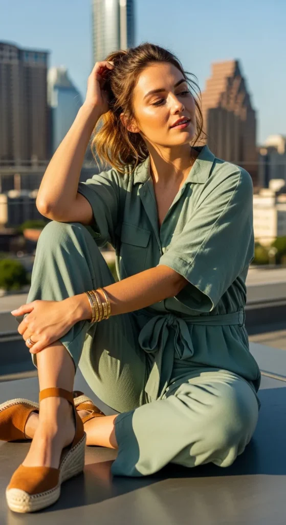 A breathable summer jumpsuit with a waist tie gives instant shape and ease. It’s practical, comfortable, and perfect for brunch dates that might turn into long afternoon strolls.