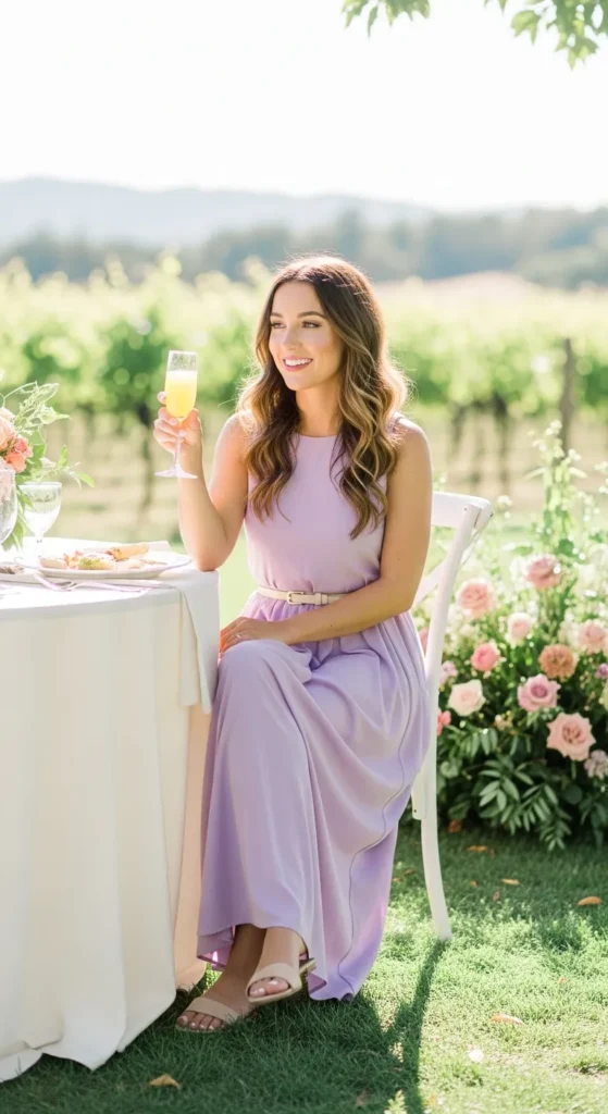 A flowing pastel maxi dress feels dreamy and elegant for longer brunch dates. The movement adds romance while keeping you cool and comfortable.