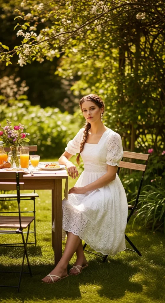 An eyelet dress brings texture and softness, making it a dreamy choice for brunch. It feels light, breathable, and quietly elegant.
