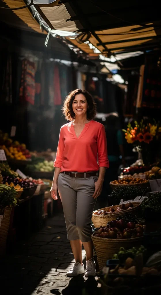 Capri pants styled with a lightweight windbreaker and sneakers offer a dynamic, on-the-go vibe. Perfect for breezy days, it feels practical without losing its stylish edge.