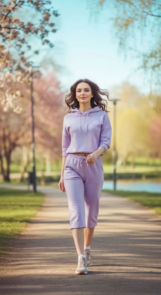 Soft pastel capri pants styled with a matching hoodie and neutral sneakers feel cozy and playful. It’s the kind of outfit that brings comfort while still feeling light and fresh.
