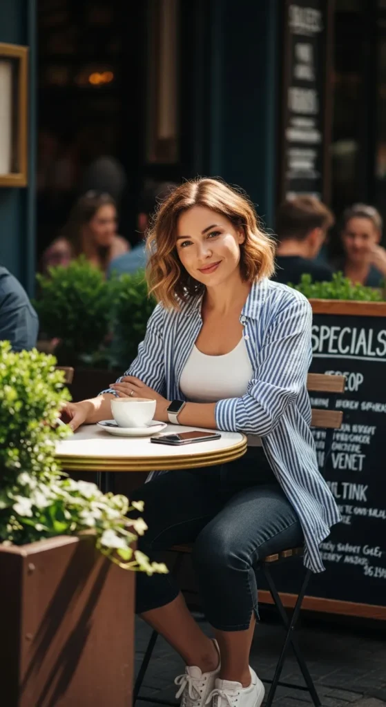 Stylist Suggestion: Keep makeup minimal and fresh. This aligns with the relaxed vibe and keeps the look authentic and effortless.