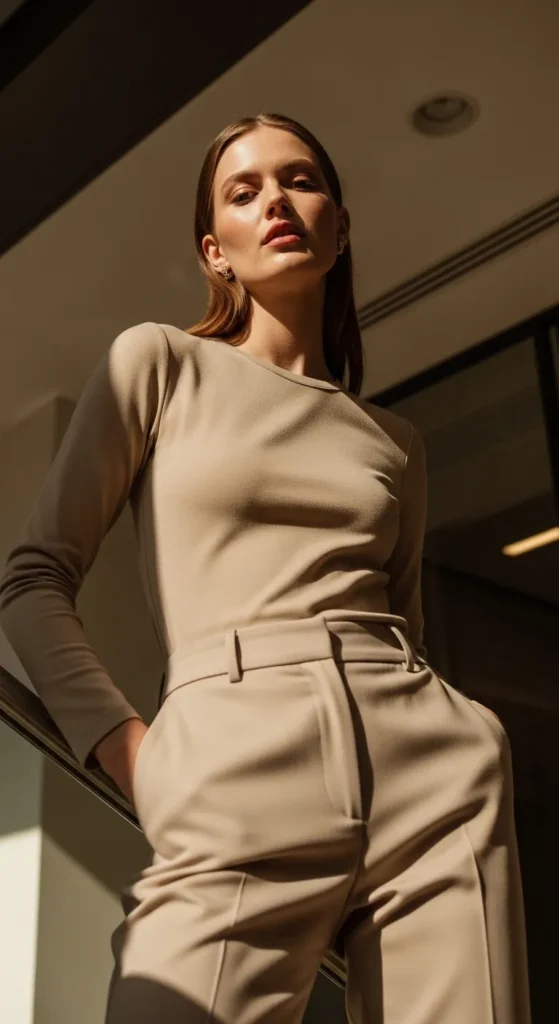 A full beige monochrome outfit creates an instantly polished capsule wardrobe look that feels soft, cohesive, and calming.