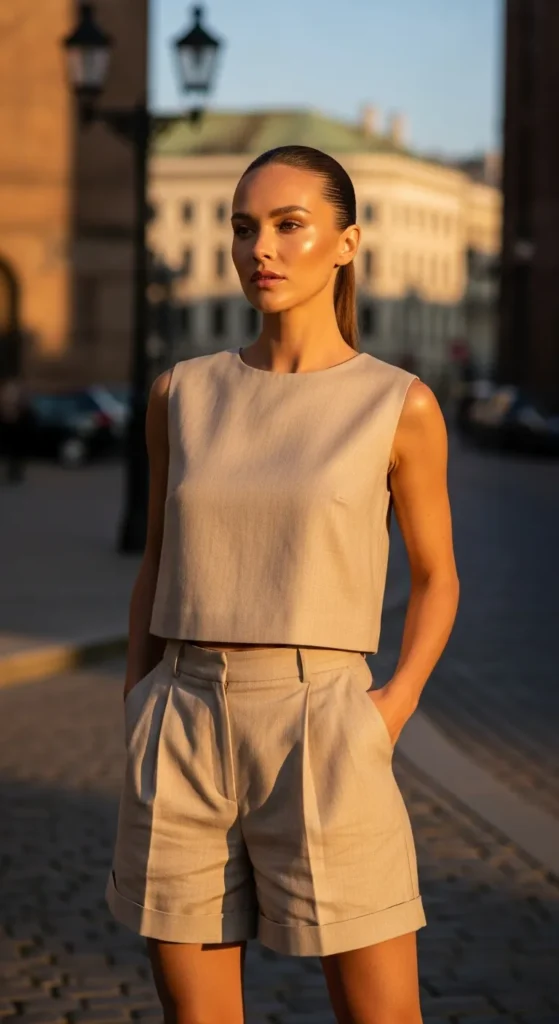 A matching neutral co-ord set feels like instant polish without effort. It’s airy, minimal, and perfect for warm days when simplicity is everything.