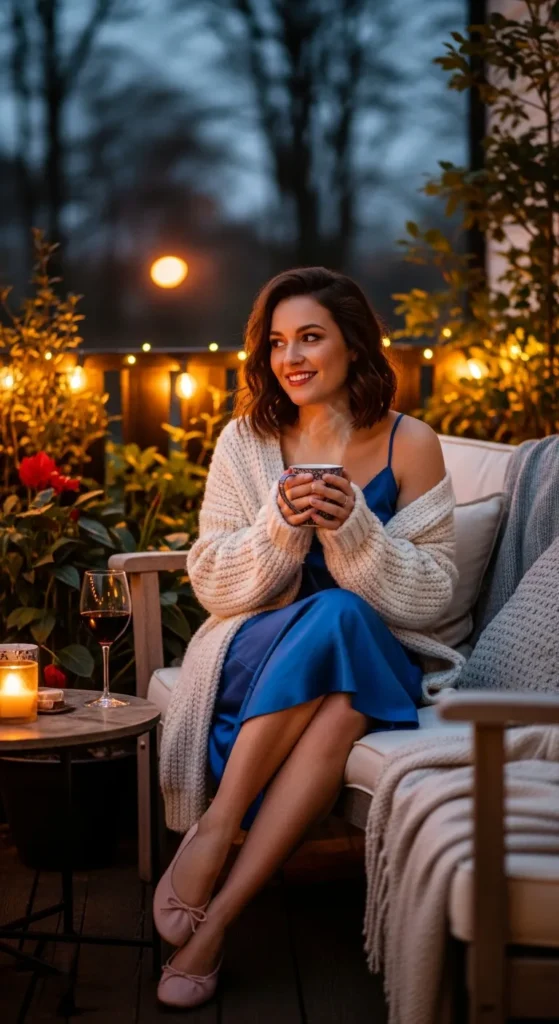 Layering a soft cardigan over a slip dress adds comfort and versatility. It’s perfect for transitioning from warm afternoons to cooler evenings without losing that delicate aesthetic.