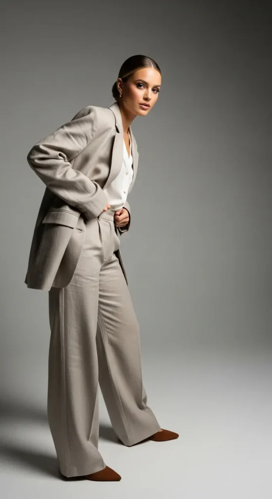 Stylist Suggestion: Break the set slightly with contrasting shoes. This keeps the outfit from feeling too uniform while adding a personal twist.