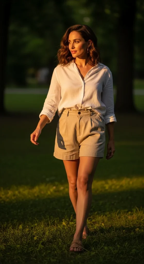 1. Soft Linen Shirt with High-Waisted Shorts