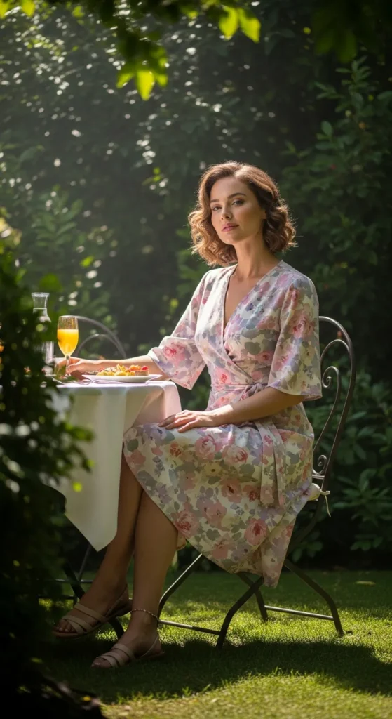 A wrap dress gently defines your waist while allowing movement, making it flattering and comfortable. Paired with flats, it becomes the perfect blend of elegance and ease for daytime outings.