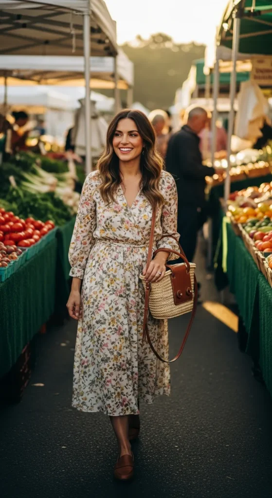 A breezy midi dress paired with classic loafers creates a charming everyday outfit that feels comfortable yet stylish. The structure of the loafers beautifully contrasts the softness of the dress.