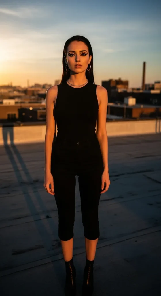 A black capri styled with a matching black or charcoal top creates a sleek monochrome outfit. It’s simple, powerful, and always looks intentional.