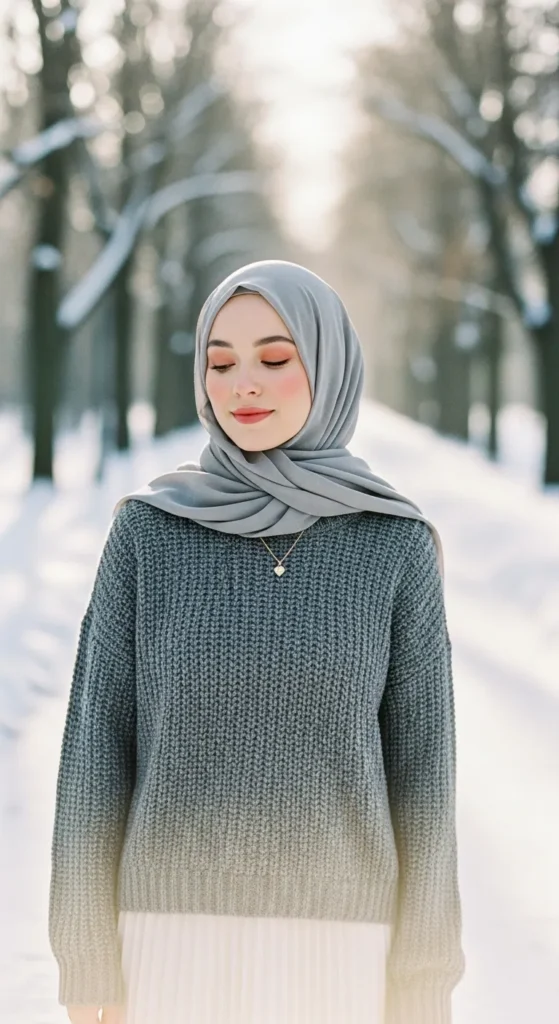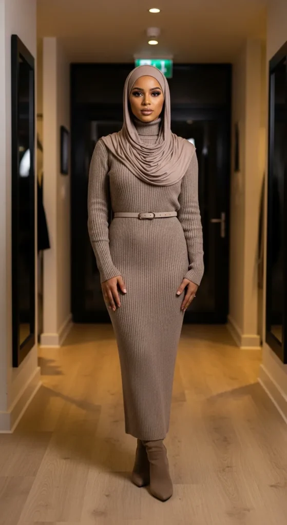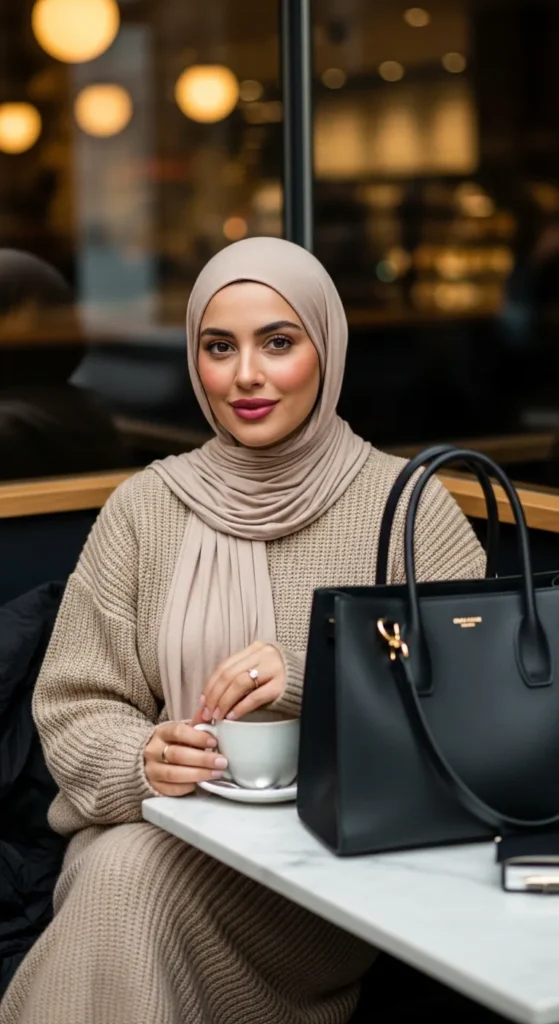 17. Cozy Matching Knit Set With Clean Hijab Style