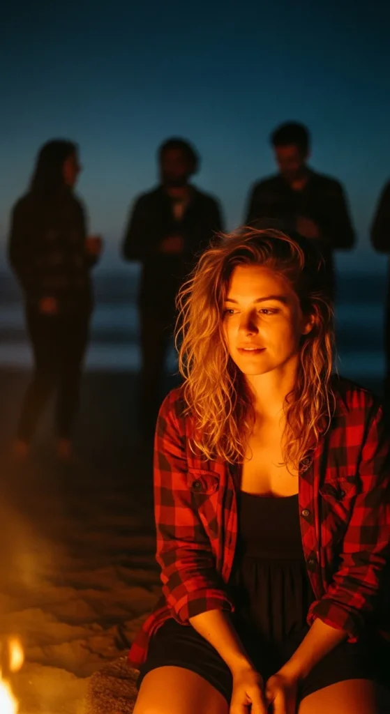 Casual tank dress layered with oversized flannel brings a nostalgic relaxed vibe. Perfect for chilly summer nights around bonfires or late-night drives when you want warmth without losing that carefree energy.