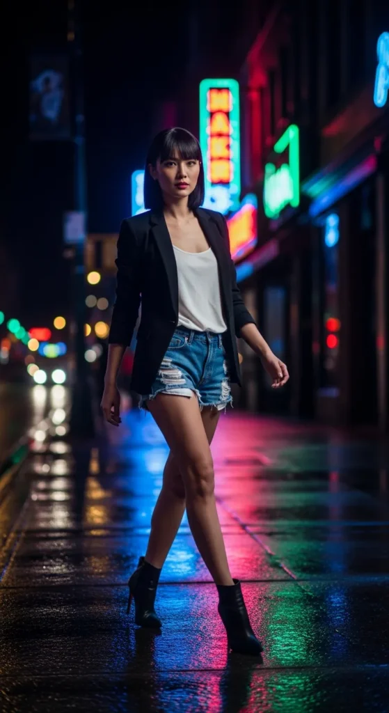 Oversized blazers layered over a simple tank and denim shorts creates a bold yet relaxed night look. Ideal for chilly summer evenings when you want structure, comfort, and a hint of confident edge.