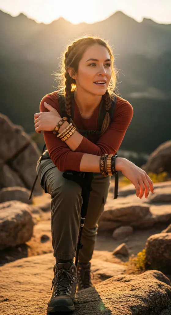 Stylist Suggestion: Choose a sleek ponytail and a slim sports watch to keep the focus on functionality. The clean hairstyle prevents distraction while enhancing a sporty mountain-ready appearance.