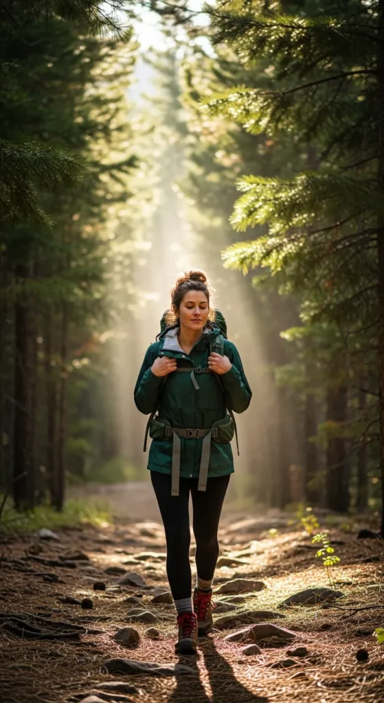Stylist Suggestion: Add a compact backpack and simple hair tie bun for practicality. It keeps the focus on movement and natural surroundings rather than styling distractions.