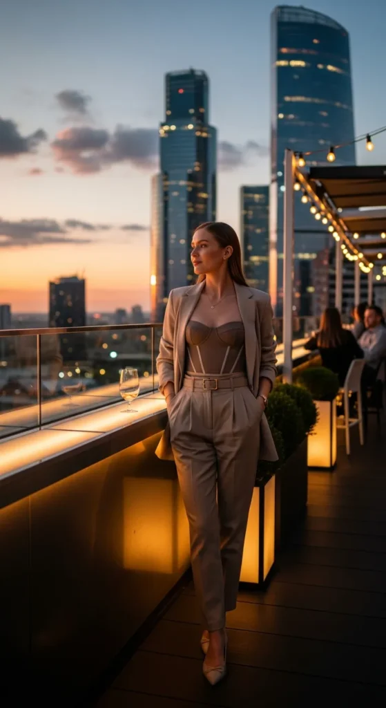Layering a corset under a lightweight blazer gives a smart-casual twist. It’s confident without being too revealing, ideal for creative workspaces or evening drinks.